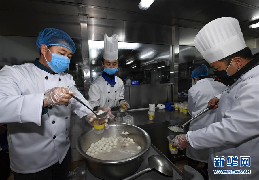 2月8日,宁夏银川市宁味楼餐饮员工为疫情防控一线工作人员准备元宵。 新华社记者 冯开华 摄