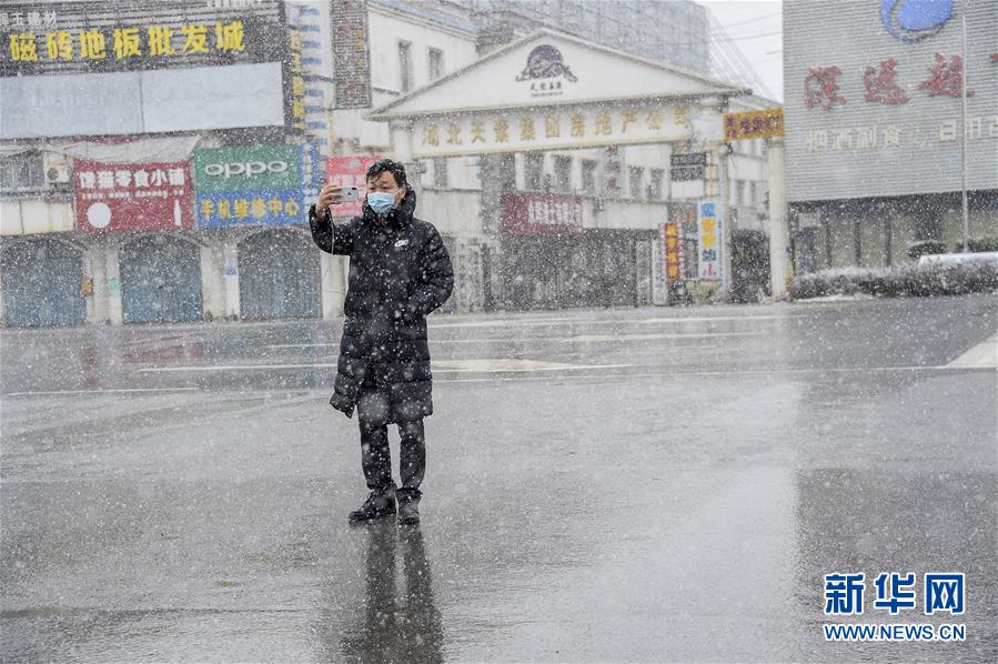 2月15日,新华社记者陈罡在孝感市孝南区新华社区出镜录制报道。新华社记者胡虎虎摄