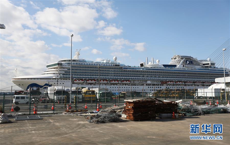 这是2月19日在日本横滨拍摄的“钻石公主”号邮轮。 当日,停靠在日本横滨港的“钻石公主”号邮轮上人员隔离期满,检测结果为阴性的乘客陆续下船回家。 新华社记者 杜潇逸 摄