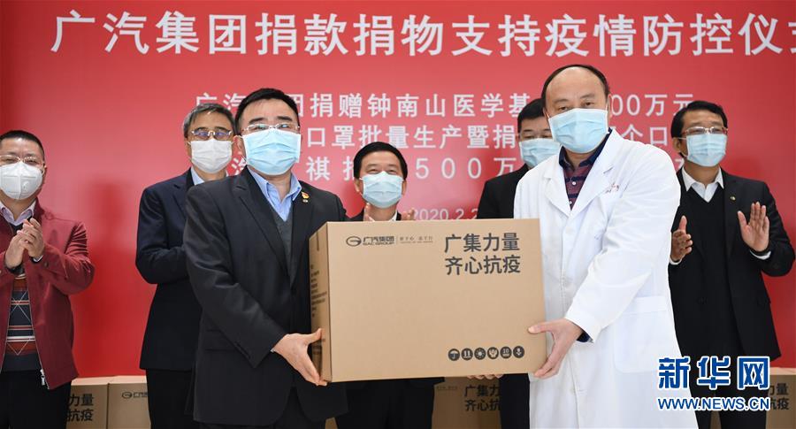 2月20日,在广东广州举行的捐献仪式上,广汽集团表示将向广州市慈善会捐赠100万只自制口罩。新华社记者邓华摄