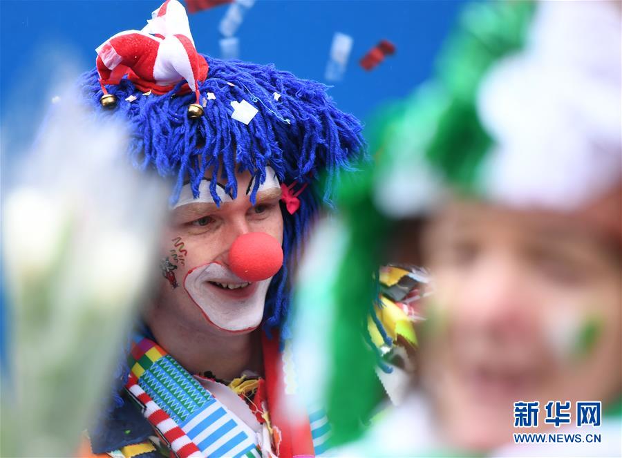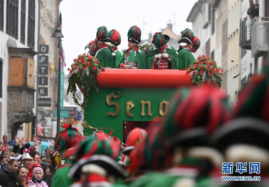 2月24日,在德国科隆,人们参加“玫瑰星期一”大游行。新华社记者 逯阳 摄