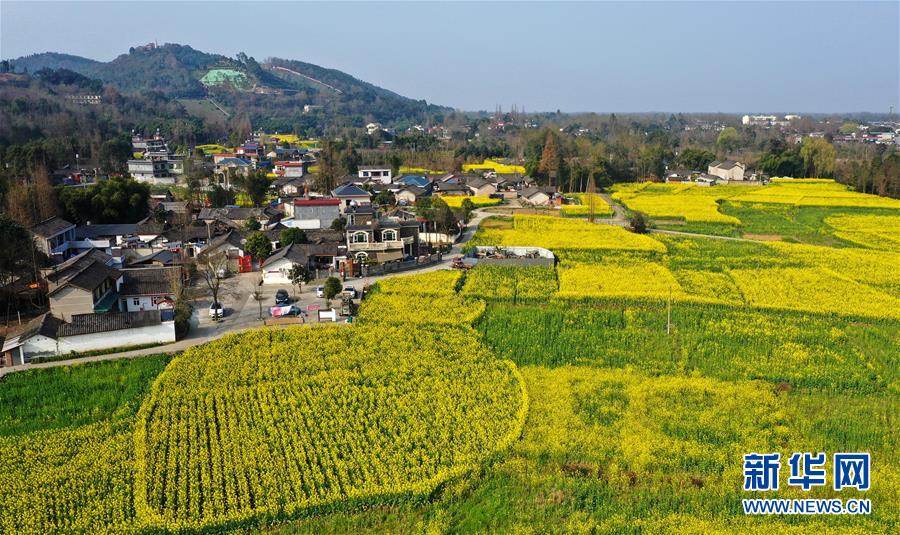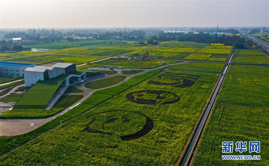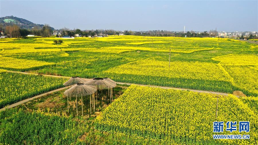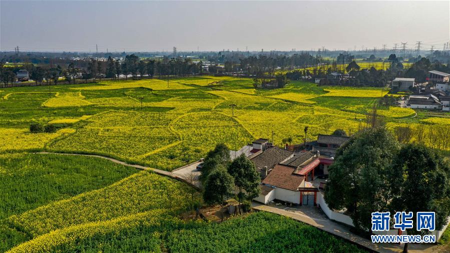 2月24日在四川省大邑县安仁镇永兴村拍摄的油菜花田(无人机照片)。 新华社记者 王曦 摄