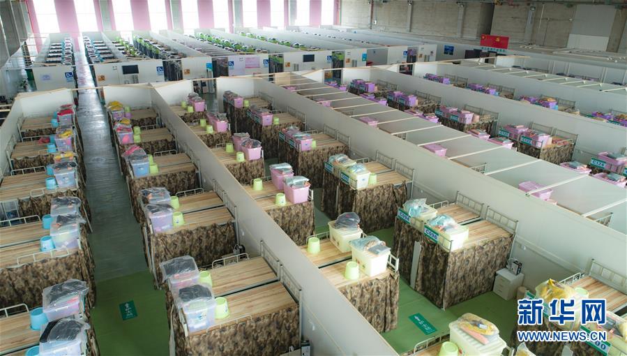 2月25日拍摄的青山楠姆方舱医院(无人机照片)。目前,武汉市青山楠姆方舱医院改造、准备工作已经初步完成,即将投入使用,可提供616张床位,收治新冠肺炎轻症患者。 新华社记者 肖艺九 摄