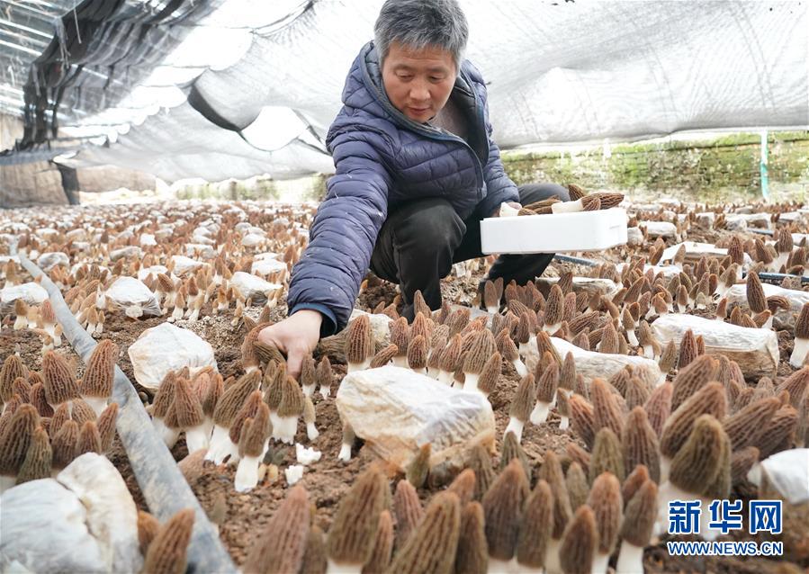 2月25日,赵县沙河店镇诚荣蔬菜种植专业合作社的社员在大棚内采摘羊肚菌。 近年来,河北省赵县实施乡村振兴战略过程中,引导农民因地制宜发展设施蔬菜、食用菌等特色种植,取得良好的经济效益。 新华社记者 杨世尧 摄