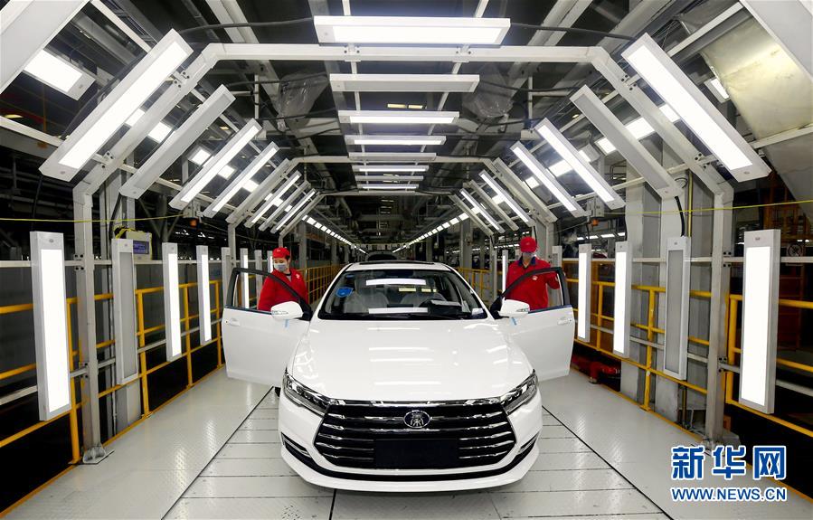 2月25日,工作人员在比亚迪西安新能源产业基地汽车总装生产线工作。 近日,位于陕西省西安市高新技术产业开发区的西安比亚迪开始复工复产。西安比亚迪各园区严格落实防控预案、区域消杀、隔离间室设置等疫情防控措施,实施集体化生产、网格化管理,确保防疫复工两不误。 新华社记者 刘潇 摄