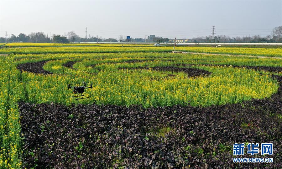2月24日,在四川省大邑县的四川润地数字农业中心,多光谱无人机在拍摄近地面的农作物多光谱图像(无人机照片)。 新华社记者 王曦 摄