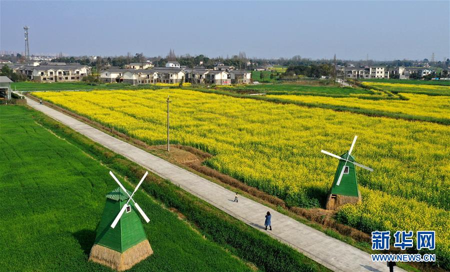 2月25日在四川省崇州市农业产业功能区拍摄的油菜花田(无人机照片)。新华社记者王曦摄