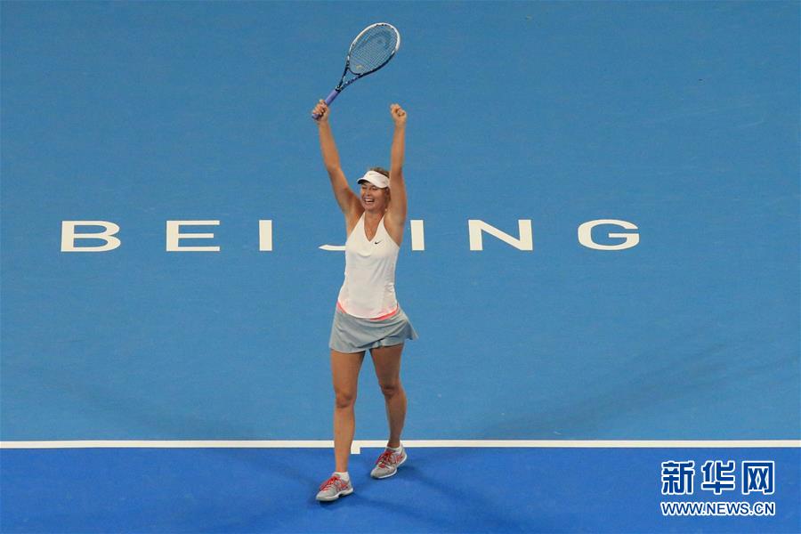 图为2014年10月5日,莎拉波娃在中国网球公开赛女子单打决赛中战胜捷克选手科维托娃,夺得冠军。 新华社记者邢广利摄