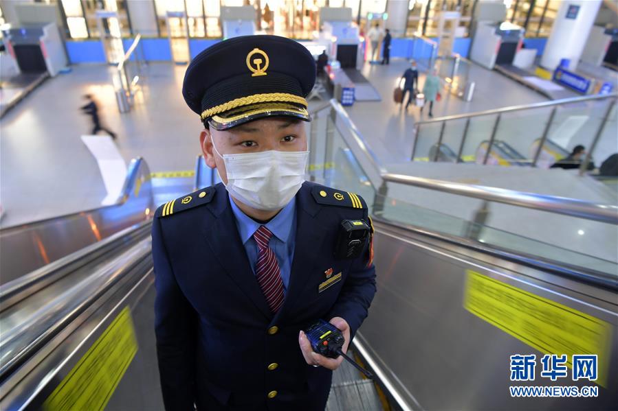 车琦在南昌站巡查(2月7日摄)。新华社记者彭昭之摄