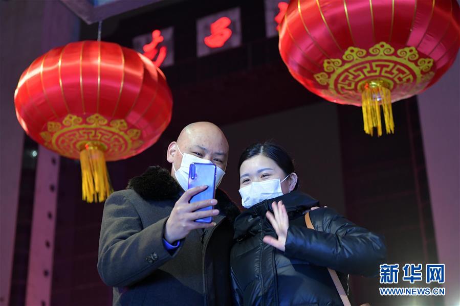车琦和妻子下班后用手机与孩子和父母视频联络(2月7日摄)。新华社记者彭昭之摄