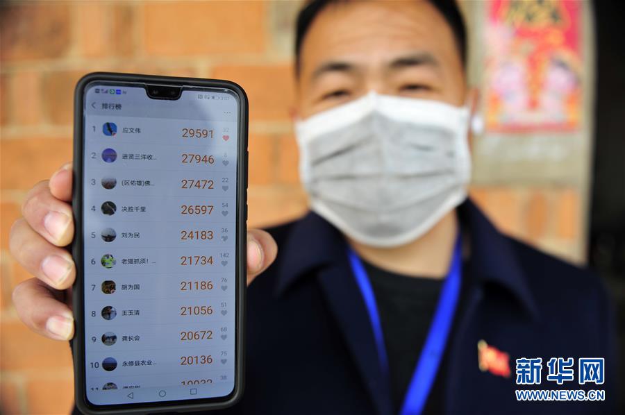驻村第一书记应文伟展示手机中自己的微信步数(2月26日摄)。应文伟是南昌市南昌县南新乡九联村驻村第一书记,新冠肺炎疫情发生后,应文伟忙着落实村里的防疫工作并想方设法帮助村民销售积压的蔬菜和鸭蛋。新华社记者彭昭之摄