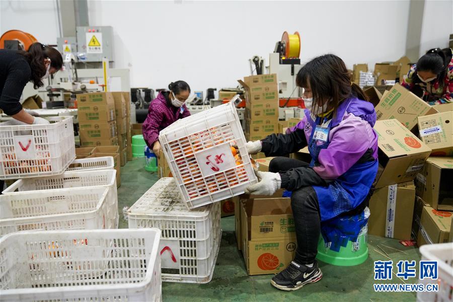2月27日,在秀山(武陵)现代物流园区的电商云仓内,工人按照订单将新鲜水果装入发货的纸箱内。地处重庆市秀山县的秀山(武陵)现代物流园区,是渝湘黔三省市交界地区的区域性物流中心。重庆市秀山县在做好新冠肺炎疫情防控工作前提下,当地政府积极帮助电商、物流企业解决招工、运输、销售等方面的实际问题,推动秀山(武陵)现代物流园区快速进入全面复工复产阶段。据介绍,随着物流园区的电商和物流企业全面复工复产,既满足当地群众的物资供应,又帮助当地农产品通过电商平台实现快速销售。新华社记者刘潺摄