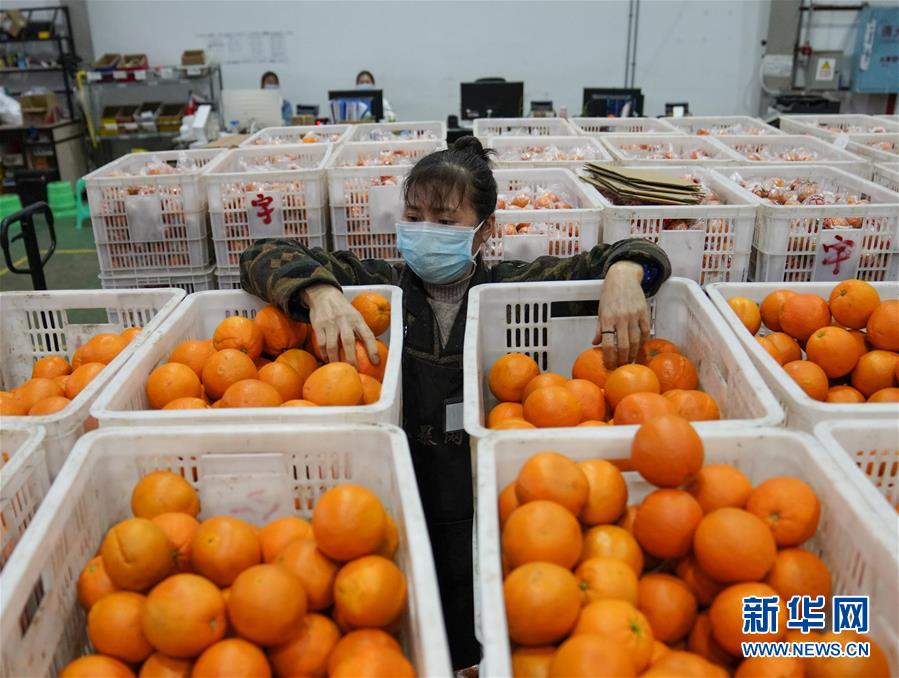 2月27日,在秀山(武陵)现代物流园区的电商云仓内,复工的工人在清点即将发货的新鲜水果。地处重庆市秀山县的秀山(武陵)现代物流园区,是渝湘黔三省市交界地区的区域性物流中心。重庆市秀山县在做好新冠肺炎疫情防控工作前提下,当地政府积极帮助电商、物流企业解决招工、运输、销售等方面的实际问题,推动秀山(武陵)现代物流园区快速进入全面复工复产阶段。据介绍,随着物流园区的电商和物流企业全面复工复产,既满足当地群众的物资供应,又帮助当地农产品通过电商平台实现快速销售。新华社记者刘潺摄