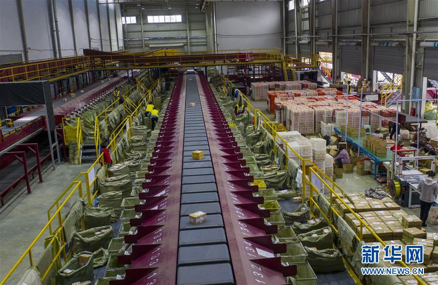 2月27日,在秀山(武陵)现代物流园区的电商云仓内,自动化的分拣设备在快速分拣发往全国各地的包裹(无人机照片)。地处重庆市秀山县的秀山(武陵)现代物流园区,是渝湘黔三省市交界地区的区域性物流中心。重庆市秀山县在做好新冠肺炎疫情防控工作前提下,当地政府积极帮助电商、物流企业解决招工、运输、销售等方面的实际问题,推动秀山(武陵)现代物流园区快速进入全面复工复产阶段。据介绍,随着物流园区的电商和物流企业全面复工复产,既满足当地群众的物资供应,又帮助当地农产品通过电商平台实现快速销售。新华社记者刘潺摄