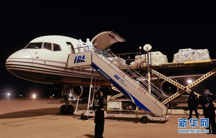 1月30日,卓尔公益基金会从日本采购的防护服通过货运专机运抵武汉天河机场。新华社记者 程敏 摄