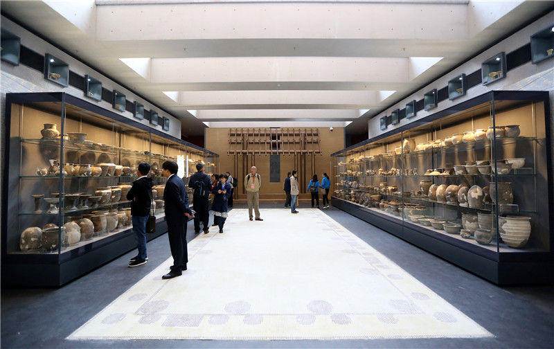 2019年10月19日,河南洛阳,二里头夏都遗址博物馆。展出的二里头考古成果陶器(部分)。