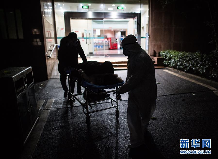 2月29日凌晨,王震(右)协助将产妇刘婷送至CT室做产前检查。新华社记者 肖艺九 摄