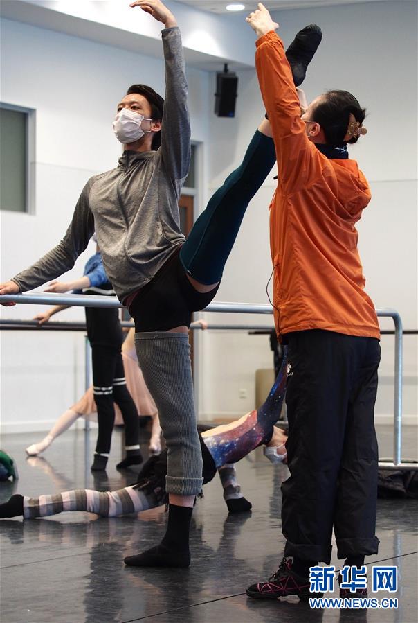 2月29日,在通过网络直播的“公益公开课”上,上海芭蕾舞团团长辛丽丽(右)在指导首席演员吴虎生。新华社记者任珑摄