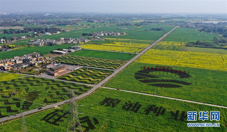 2月24日在四川省大邑县安仁镇永兴村拍摄的油菜花田(无人机照片)。新华社记者王曦摄