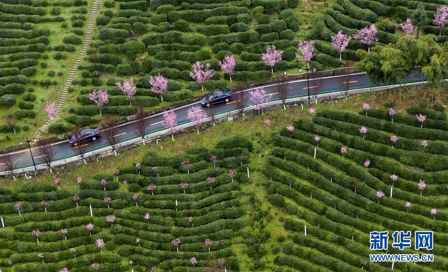3月2日,车辆行驶在平利县长安镇洪福茶山道路上(无人机照片)。新华社记者陶明摄