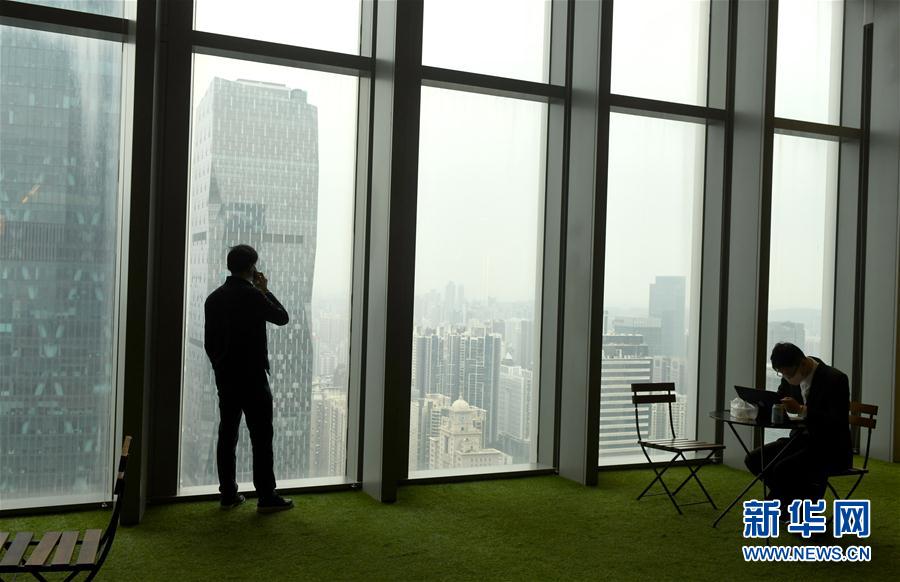 3月3日,复工人员在广州市珠江新城周大福金融中心内工作。 新华社记者 卢汉欣 摄