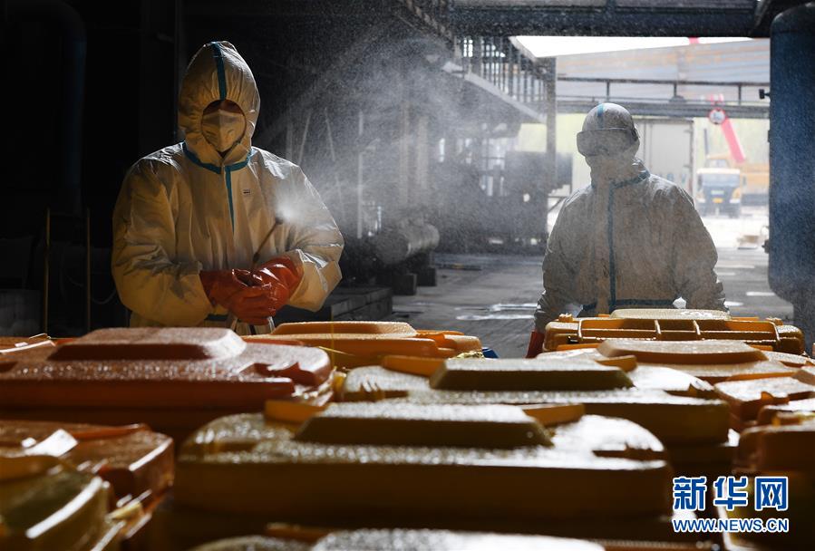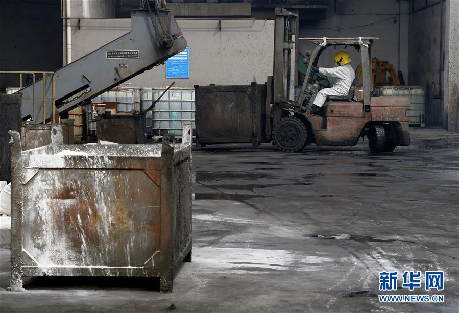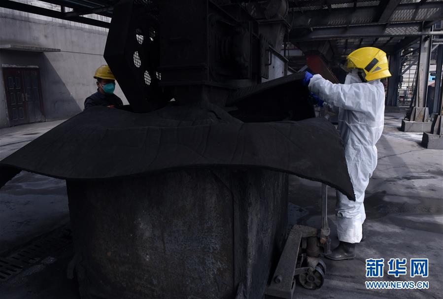 3月4日,工作人员在武汉市青山区云峰公司车间处理垃圾焚烧后的废渣。新华社记者 李贺 摄