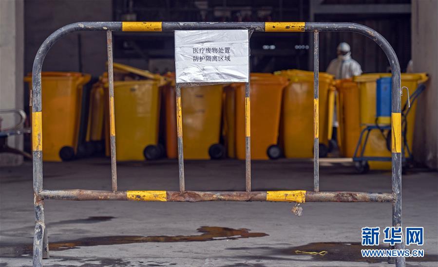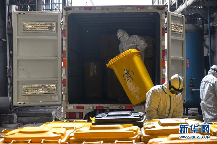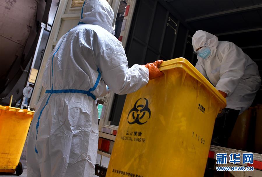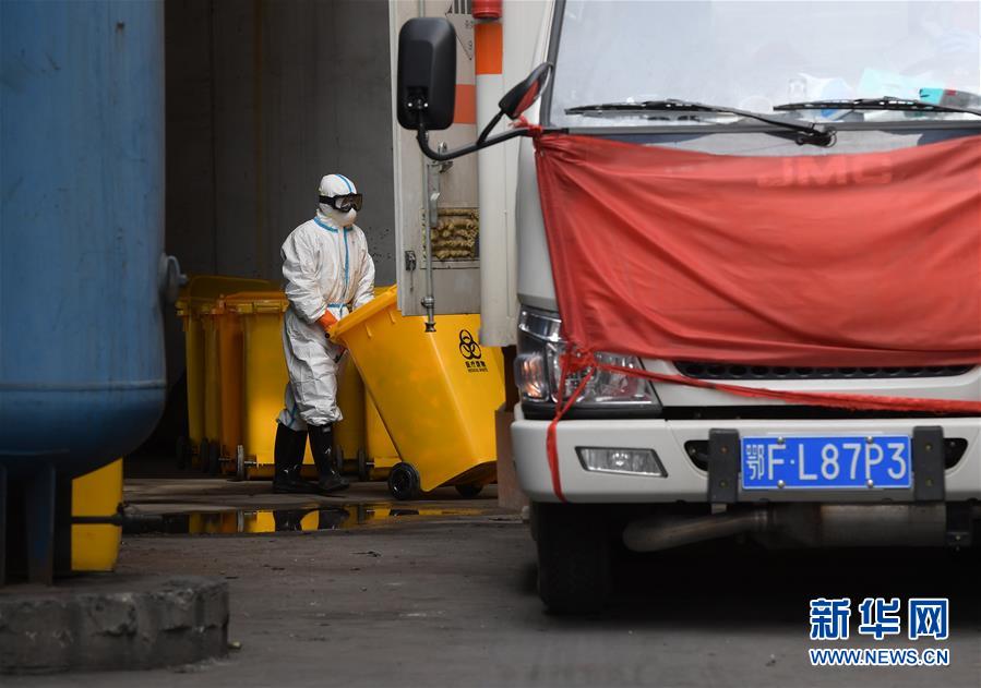 2月19日,在武汉市协和医院西院区,工作人员在转运医疗垃圾。新华社记者 才扬 摄