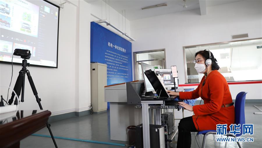 3月4日,职教城内的鞍山市技师学院的王晓娜老师为学生进行机电一体化网络授课。辽宁省鞍山市职教城内的各类职业教育学校从3月2日恢复网络授课以来,教师们设置了丰富多彩的课程,提高1万余名学生线上学习的积极性。新华社记者 姚剑锋 摄