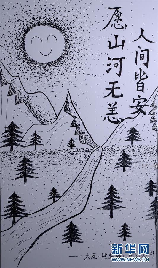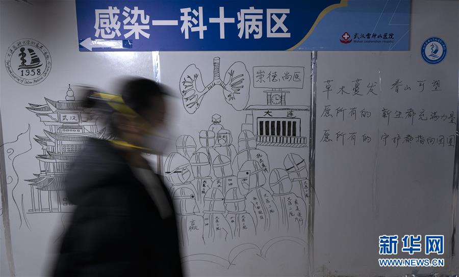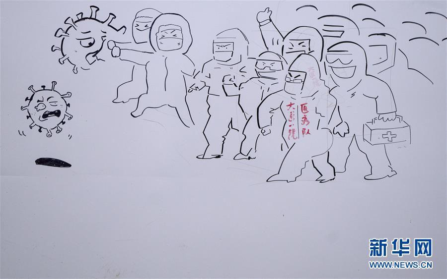 这是3月4日在武汉雷神山医院“艺术长廊”里拍摄的图画。雷神山医院建成后,各地医疗队进驻这里,全力以赴救治患者。雷神山医院走道间的墙,逐渐成为医护人员和工作人员表达内心感受的窗口,他们在此画画、写字......温情的笔触、有力的画笔,寄托了美好的祝愿,也展示了他们战胜疫情的信念与决心!新华社记者 程敏 摄