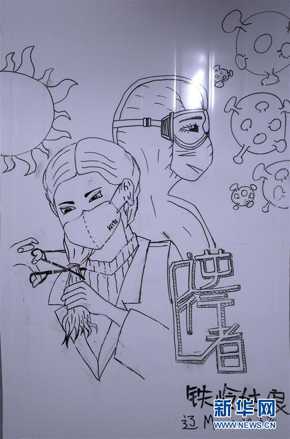 这是3月4日在武汉雷神山医院“艺术长廊”里拍摄的图画。雷神山医院建成后,各地医疗队进驻这里,全力以赴救治患者。雷神山医院走道间的墙,逐渐成为医护人员和工作人员表达内心感受的窗口,他们在此画画、写字......温情的笔触、有力的画笔,寄托了美好的祝愿,也展示了他们战胜疫情的信念与决心!新华社记者 费茂华 摄