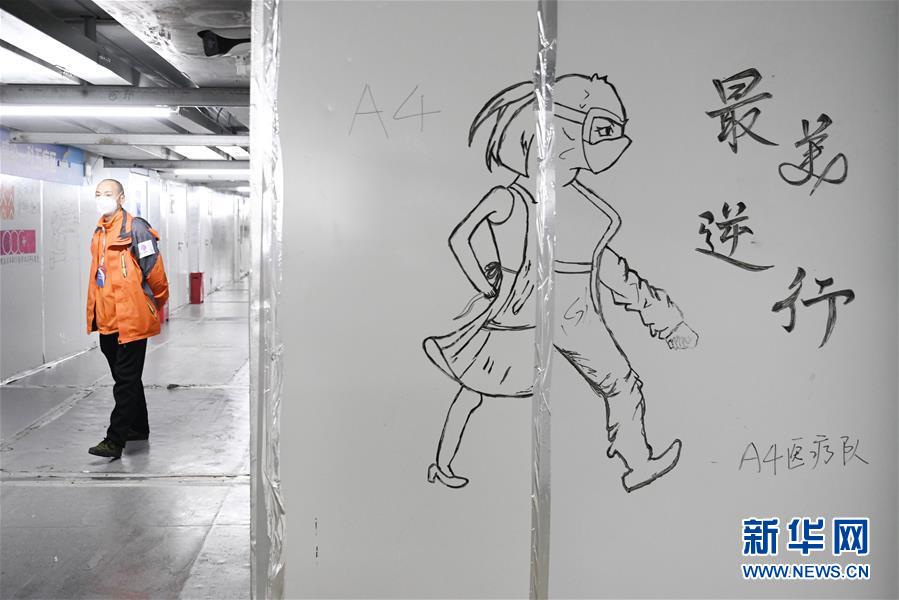 这是3月4日在武汉雷神山医院“艺术长廊”里拍摄的图画。雷神山医院建成后,各地医疗队进驻这里,全力以赴救治患者。雷神山医院走道间的墙,逐渐成为医护人员和工作人员表达内心感受的窗口,他们在此画画、写字......温情的笔触、有力的画笔,寄托了美好的祝愿,也展示了他们战胜疫情的信念与决心!新华社记者 程敏 摄