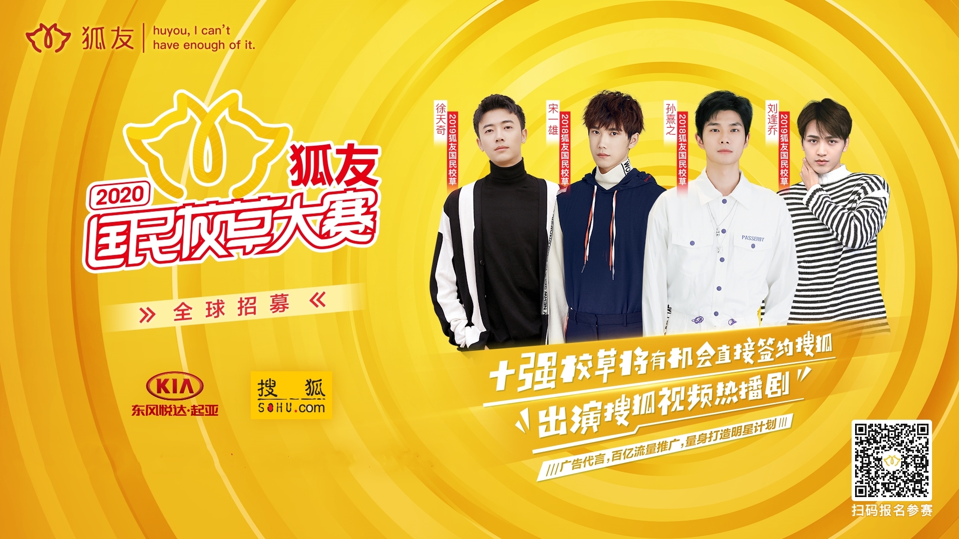 想成为下一部爆款剧的男主角?想进入搜狐这个大文娱生态系统?快来报名参加“2020狐友国民校草大赛”吧!