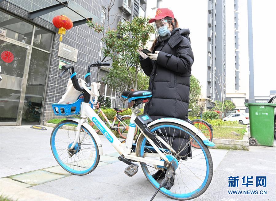 3月7日,郑欣怡准备骑共享单车前往武汉中百仓储百步亭花园路店做志愿服务。新华社记者陈晔华摄