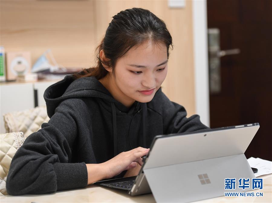 3月4日,郑欣怡在家为山西太原的一名初三学生在线辅导功课。这名学生的妈妈是山西援助湖北医疗队在武汉市优抚医院支援的一名护士。新华社记者陈晔华摄