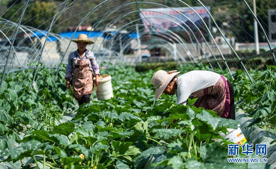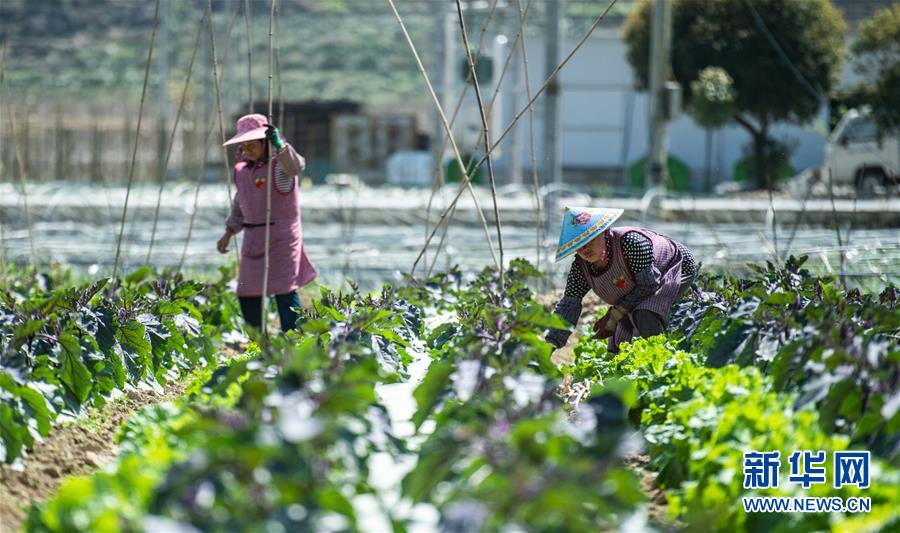 3月8日,贵州省罗甸县龙坪镇罗化村村民在田地里劳作。新华社记者 陶亮 摄
