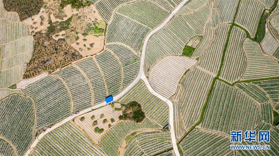 3月8日,贵州省罗甸县龙坪镇罗化村村民在田地里劳作(无人机照片)。新华社记者 陶亮 摄