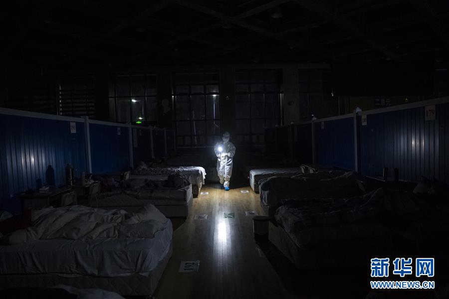3月9日晚,在位于武汉市洪山体育馆的武昌方舱医院,江西支援湖北医疗队队员胡佩在熄灯后巡视,查看患者休息情况。当晚,记者来到武昌方舱医院,记录下这家方舱医院的最后一夜。武汉所有的方舱医院预计将于3月10日正式休舱。新华社记者沈伯韩摄