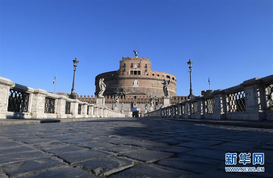 3月10日,在意大利首都罗马,圣天使桥上空无一人。 新华社发(阿尔贝托·林格利亚摄)