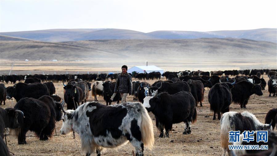 在甘孜藏族自治州石渠县,当地村民在放牧(2019年11月1日摄)。通过“逐草游牧”向“种草集约定牧”转变,仅2014年至2018年,石渠县就实施退牧还草200万亩。新华社记者陈天湖摄