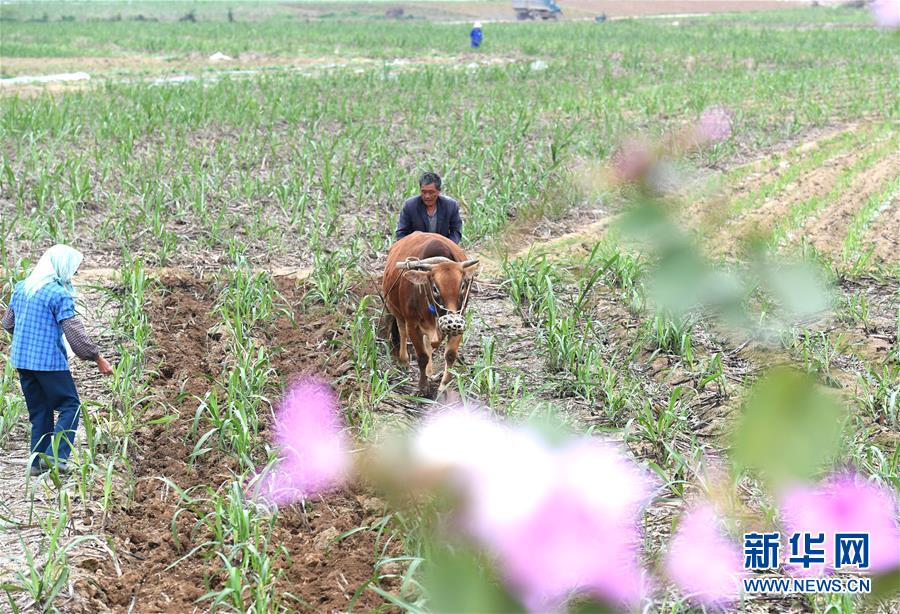 3月11日,农民在广西南宁市江南区苏圩镇给甘蔗幼苗培土追肥。 近日,随着气温的回升,广西南宁市江南区群众抓紧农时,开展农田管护,田间地头一派繁忙景象。 新华社记者 周华 摄