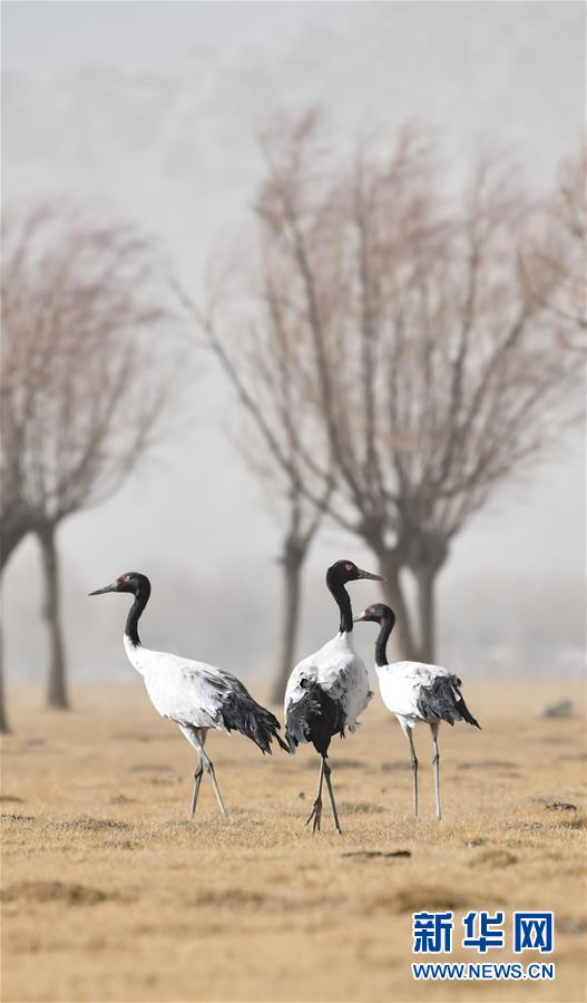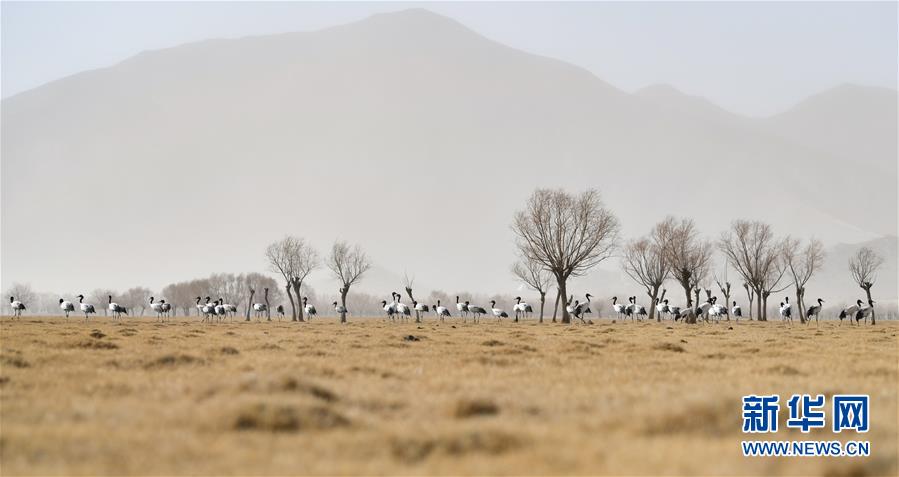 在西藏山南市境内雅鲁藏布江北岸,黑颈鹤在休憩(3月11日摄)。 随着天气转暖,西藏雅鲁藏布江河谷地带的黑颈鹤即将结束越冬,返回藏北。 新华社记者 晋美多吉 摄