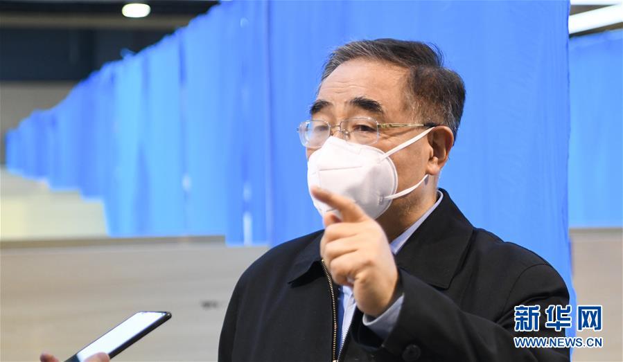 中国工程院院士张伯礼在江夏方舱医院介绍情况(2月14日摄)。 新华社记者 程敏 摄