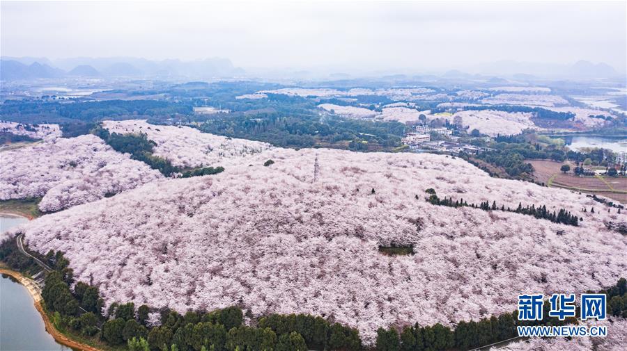 3月12日拍摄的贵安新区樱花观光园风景。 近日,贵州省贵安新区樱花观光园内樱花竞相盛开,花团锦簇间春意盎然。据介绍,疫情防控期间,为避免人群聚集,樱花园暂不接待游客。 新华社记者 陶亮 摄