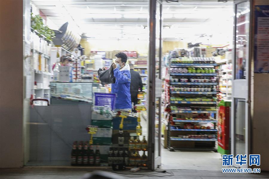 3月12日,李杰天黑之后返回途中来到一家便利店取件。新华社记者张玉薇摄