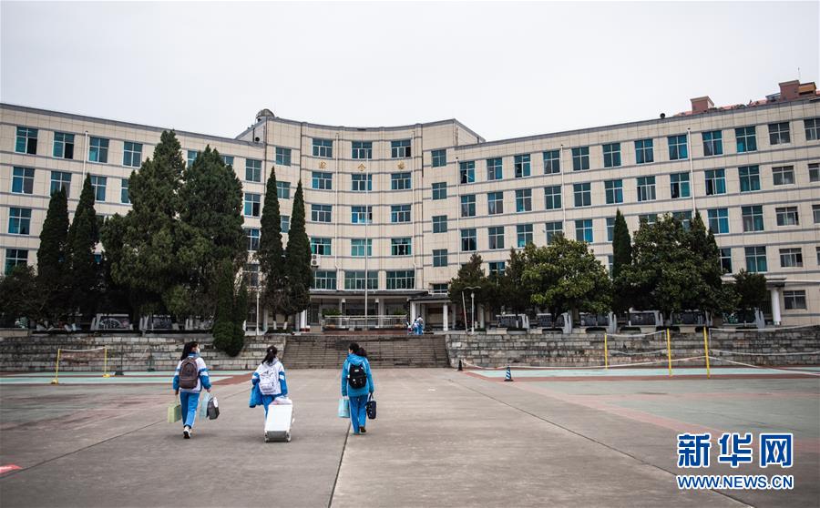 3月15日,乌当中学高三学生走向教学楼。 当日,贵阳市乌当中学部分高三学生有序返校,准备恢复上课。据悉,贵州省高三年级和初三年级学生将于3月16日正式开学。 新华社记者 陶亮 摄