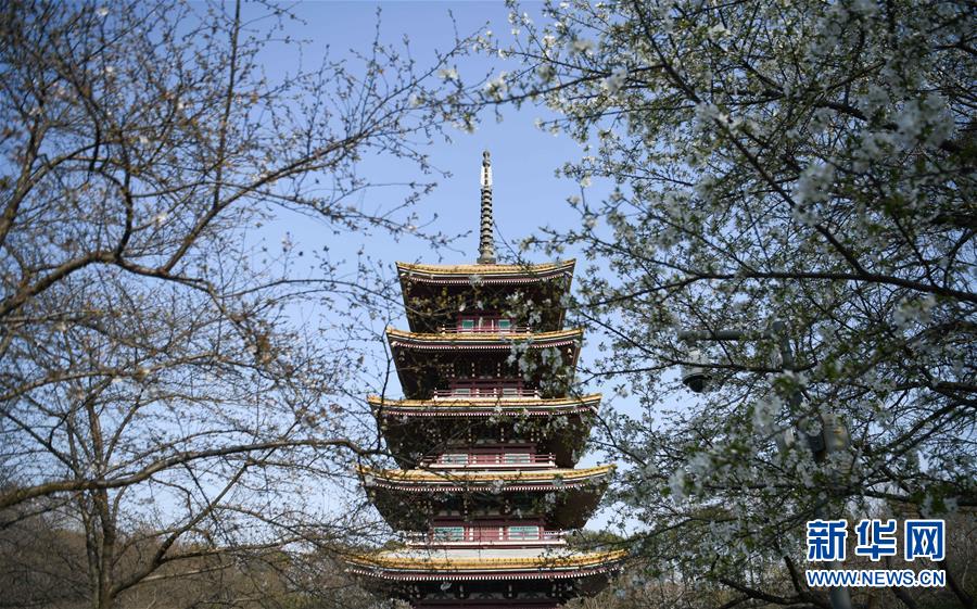 这是3月14日拍摄的武汉东湖磨山樱园景色。近日气温渐升,武汉东湖磨山樱园里的樱花渐次盛开,带来春天的气息。新华社记者熊琦摄