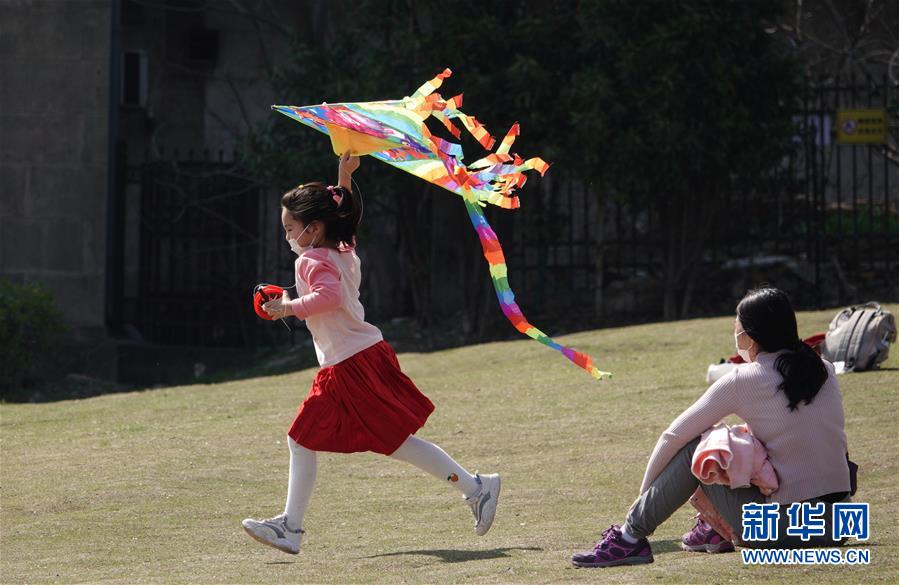 3月15日,一名小朋友在南京东郊体育公园放风筝。 当日,南京风和日丽,市民们来到东郊体育公园,踏青春游。 新华社记者 杨磊 摄