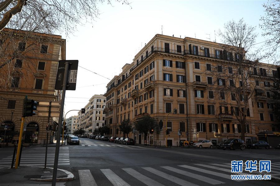 3月15日,在意大利首都罗马,街头空无一人。新华社记者程婷婷摄