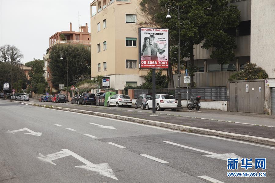这是3月14日在意大利首都罗马拍摄的空荡荡的街道。新华社记者刘咏秋摄
