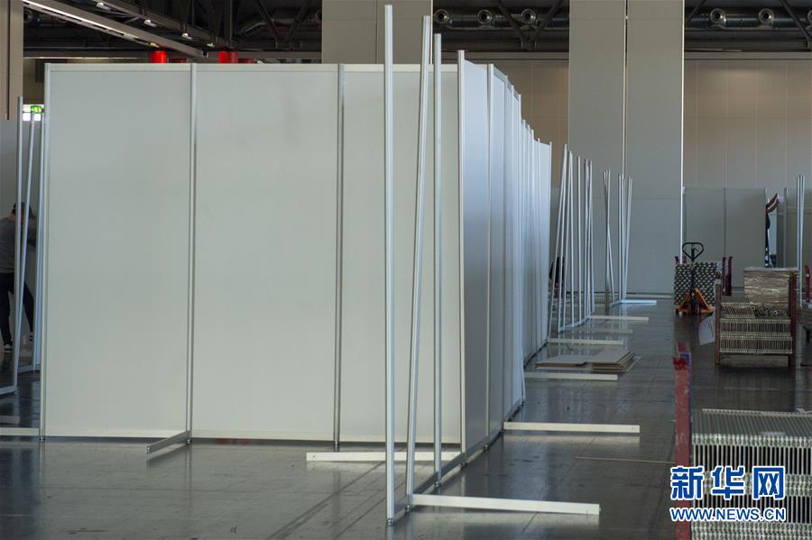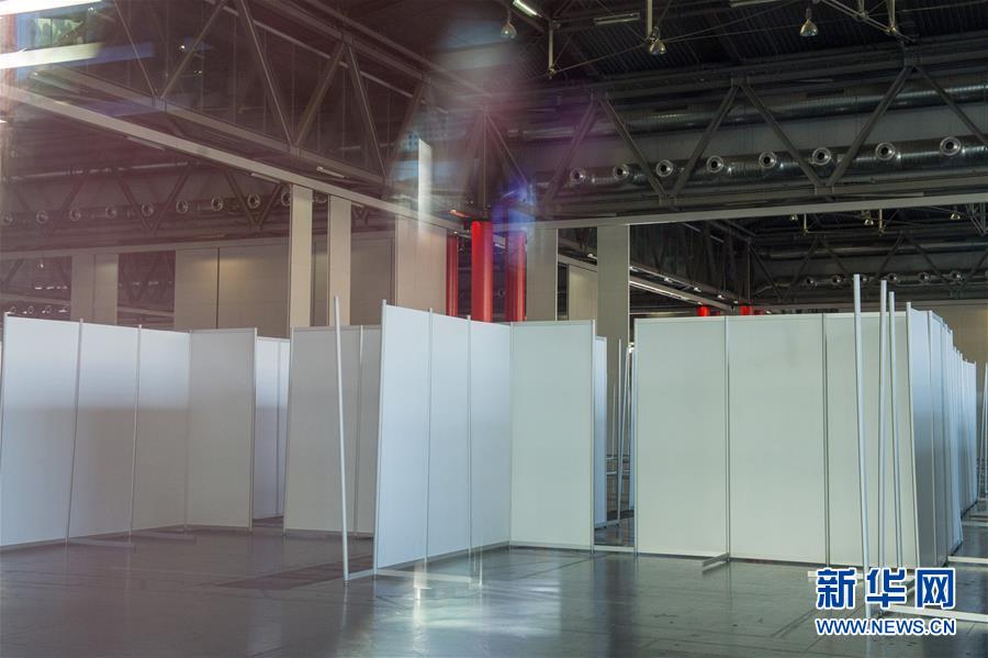 3月14日,在即将改造成为方舱医院的维也纳展览馆内,工作人员正在加紧施工。近日,由于奥地利新型冠状病毒感染人数不断增加,奥地利首都维也纳正在将该市的一座大型展览馆——维也纳展览馆改造成为一座临时性的方舱医院。据当地媒体介绍,该方舱医院将在下周提供880张床位,用于收治轻度病症患者。新华社记者郭晨摄